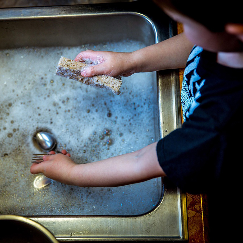 아이가 깨끗이 설거지를 끝내면 미래의 기회, 운이 정리되고 열림